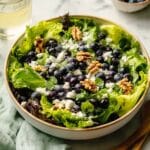 A vibrant and refreshing 10-minute Easter Spring Mix Salad featuring a blueberry vinaigrette, toasted walnuts, goat cheese, and fresh blueberries tossed with delicate spring mix greens. This light and flavorful salad is perfect for springtime occasions or a quick healthy meal.