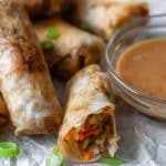 Crispy and flavorful Air Fryer Rice Paper Dumplings filled with a savory stir-fry vegetable medley, served with a creamy peanut dipping sauce. These light and healthy dumplings are perfect as a snack or appetizer, combining Asian-inspired spices and easy air frying for a convenient yet delicious dish.