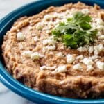 - Serve: Plate the refried beans and top with crumbled cotija cheese if desired. Serve warm and enjoy this traditional Mexican side dish!