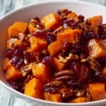 This Autumn Butternut Squash Apple Bake is a warm, comforting dish perfect for fall. Combining tender roasted butternut squash and sweet gala apples with fragrant cinnamon, vanilla, and a touch of brown sugar, this recipe is enhanced with golden raisins, dried cranberries, and crunchy nuts. Baked until tender and lightly browned, it’s an ideal side dish or vegetarian centerpiece that brings a cozy seasonal flavor to your table.