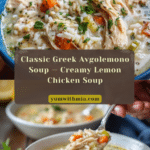Avgolemono is a comforting Greek lemon chicken soup known for its bright, tangy flavor and creamy texture. This hearty soup combines tender chicken, rice, and a luscious egg-lemon broth, making it perfect for any season.