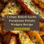 Crispy and flavorful baked garlic parmesan potato wedges seasoned with olive oil, garlic, Italian herbs, and parmesan cheese. Perfect as a hearty side dish or a tasty snack, these wedges are oven-baked to golden perfection with a savory crust and tender insides.