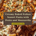Baked Italian Sunset Pasta is a hearty, comforting dish featuring mezzi rigatoni tossed in rich meat sauce, layered with fresh mozzarella, pesto, and parmesan cheese, then baked to bubbly perfection. This easy-to-make casserole combines classic Italian flavors and creamy textures, making it ideal for family dinners or gatherings.