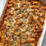 Keywords: baked pasta, Italian casserole, pesto pasta bake, mezzi rigatoni recipe, meat sauce pasta bake, comforting Italian dish
