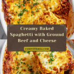 Keywords: baked spaghetti, cream cheese spaghetti, casserole, ground beef pasta, easy family dinner, Italian American recipe