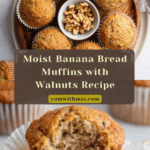 These Banana Bread Muffins are moist, flavorful, and packed with ripe bananas and crunchy walnuts. Perfect for breakfast or a snack, they combine the sweetness of bananas with warm cinnamon and a hint of vanilla, baked to golden perfection in a muffin pan.