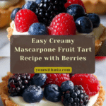 This Beautiful Fruit Tart with Mascarpone features a crisp, buttery pastry shell filled with a creamy mascarpone and cream cheese mixture, topped with vibrant assorted berries and finished with a glossy apricot glaze. Perfect for a refreshing dessert that combines rich textures and fresh flavors.