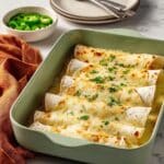 These Best White Rotisserie Chicken Enchiladas combine tender shredded chicken with a creamy cheese filling and a luscious white sauce. Baked to bubbly perfection and finished under the broiler for a golden, crispy top, this comforting dish offers a delightful twist on traditional enchiladas with a rich, flavorful sauce and melty Monterey Jack cheese.