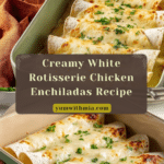 These white rotisserie chicken enchiladas bring a creamy, cheesy twist to a classic favorite. With tender shredded chicken and a rich, tangy sauce, they’re perfect for an easy weeknight dinner or a crowd-pleasing meal.