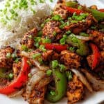 This Black Pepper Chicken is a flavorful and quick stir-fry dish featuring tender boneless chicken thighs marinated in freshly ground black pepper, cooked with crisp green bell peppers, onions, and a savory blend of soy and oyster sauces. Easy to prepare and perfect for a hearty weeknight meal, it combines spicy, savory, and slightly sweet elements for a deliciously balanced dish.
