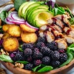 This Blackberry Balsamic Grilled Chicken Salad is a delightful combination of fresh flavors and textures. Featuring juicy grilled chicken, a vibrant blackberry balsamic vinaigrette, and crispy fried goat cheese, it’s a perfect meal for a light lunch or dinner. The mix of sweet, tangy, and savory elements will keep you coming back for more.