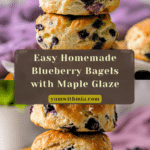 Delight in these homemade Blueberry Bagels that blend the natural sweetness of blueberries with the soft, chewy texture of bagels made from self-rising flour and dairy-free Greek yogurt. Perfectly baked to a golden brown, these bagels are topped with a sweet maple syrup glaze for a deliciously satisfying breakfast or snack option.