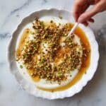 Hot honey adds a delightful spicy sweetness that balances the creamy cheese and salty pistachios. You can use regular honey or another sweet drizzle, but the heat adds an extra layer of flavor.