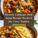 This hearty Cabbage Roll Soup combines all the comforting flavors of traditional cabbage rolls in a delightful, easy-to-make soup. Ground beef, tender cabbage, and rice simmer together in a savory tomato and beef broth base, accented with aromatic garlic, onion, and a touch of sweetness from brown sugar. Perfect for a warming meal any time of year.