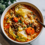 Cabbage Roll Soup captures all the comforting flavors of classic cabbage rolls in a warm, hearty soup. This easy recipe combines ground beef, cabbage, rice, and a tomato-based broth for a satisfying meal perfect any day of the week.