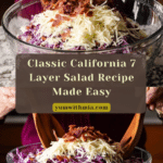 California 7 Layer Salad is a vibrant, colorful layered vegetable salad featuring a fresh mix of cabbage, lettuce, bell peppers, and onions, topped with crispy bacon, aged cheddar cheese, and creamy homemade mayonnaise. This refreshing, make-ahead salad is perfect for potlucks and gatherings, offering a satisfying crunch and a harmonious blend of flavors chilled to perfection.