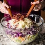 Keywords: 7 layer salad, layered salad, California salad, bacon salad, cabbage salad, cheddar salad, potluck salad, make-ahead salad