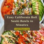 Keywords: California roll, sushi bowl, sushi rice, imitation crab, avocado, cucumber, easy sushi recipe