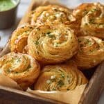 Cheesy Garlic Cruffins are a delightful fusion of croissant and muffin, featuring layers of buttery crescent dough filled with sharp cheddar cheese and infused with garlic and chives. Perfect as a savory breakfast treat or a flavorful snack, these cruffins are baked to golden perfection and finished with a garlic-chive butter glaze for an irresistible taste and aroma.