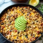 Keywords: Cheesy taco rice skillet, ground beef skillet, Mexican rice skillet, easy one-pan dinner, taco rice bake
