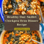 This healthy one-skillet Chickpea Orzo recipe is a simple, flavorful dinner option packed with nutritious ingredients like chickpeas, kale, and orzo pasta. It features sautéed vegetables, aromatic herbs, and a rich tomato paste base, simmered together to create a comforting, wholesome meal that’s easy to make and perfect for weeknight dinners.