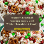 Keywords: Christmas popcorn, holiday snack, white chocolate popcorn, festive popcorn recipe, candy cane popcorn, holiday treat