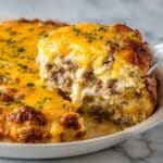 This Cowboy Biscuit Casserole is a hearty and comforting dish perfect for family dinners. Featuring layers of cheesy biscuits, seasoned ground beef, and a creamy topping, it’s a satisfying meal that’s easy to put together and sure to please everyone at the table.