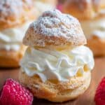 This classic Cream Puffs recipe features light and airy choux pastry filled with rich, fluffy whipped cream and optional fresh raspberries. Perfect for an elegant dessert or special occasion treat, these delicate puffs are baked until golden and crisp, then filled with sweet vanilla whipped cream and dusted with powdered sugar. Learn how to make the pastry from scratch, pipe perfect rounds, and create a luscious filling for an impressive homemade dessert.
