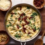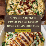 This Creamy Chicken Pesto Pasta is a comforting and flavorful dish that’s perfect for weeknight dinners. Tender chicken combines with a rich pesto cream sauce, sun-dried tomatoes, and fresh spinach for a satisfying meal everyone will love.