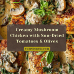 This creamy mushroom chicken recipe combines tender chicken breasts with a savory mushroom sauce enriched with sun-dried tomatoes, olives, and spinach. It’s a comforting and flavorful dish perfect for a weeknight dinner or special occasion.