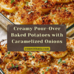 This Creamy Pour-Over Baked Potatoes recipe features thinly sliced russet or Yukon Gold potatoes baked in a luscious mixture of caramelized onions, heavy cream, Parmesan cheese, and fresh thyme. The slow caramelization of onions adds a sweet and savory depth, while the creamy herb-infused sauce soaks the potatoes to tender perfection. Finished with a golden Parmesan crust, this dish is perfect for a comforting and flavorful side or a cozy main course during cooler months.
