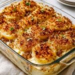 This Creamy Pour-Over Baked Potatoes recipe features thinly sliced russet or Yukon Gold potatoes baked in a luscious mixture of caramelized onions, heavy cream, Parmesan cheese, and fresh thyme. The slow caramelization of onions adds a sweet and savory depth, while the creamy herb-infused sauce soaks the potatoes to tender perfection. Finished with a golden Parmesan crust, this dish is perfect for a comforting and flavorful side or a cozy main course during cooler months.