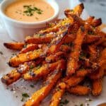 Crispy oven baked sweet potato fries are a delicious and healthier alternative to traditional fried fries. With a perfect blend of spices and a simple baking method, these fries come out golden and crispy every time. They’re perfect as a side dish or a tasty snack.