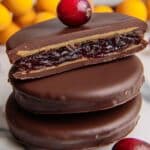 These Dark Chocolate Covered Cranberry Sauce Bites combine the tartness of jellied cranberry sauce with rich dark chocolate, creating a festive and delicious treat perfect for the holidays or anytime you crave a sweet-tart snack. Frozen cranberry rounds dipped in smooth melted chocolate make for an easy no-bake dessert that’s both unique and indulgent.