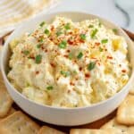 This creamy and flavorful Deviled Egg Dip combines chopped hard-boiled eggs with a rich mixture of cream cheese, mayonnaise, and tangy relish. Enhanced with ground mustard and a hint of paprika, it’s an easy-to-make appetizer perfect for parties, game days, or casual snacking.