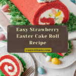 This delightful Easter Cake Roll features a light strawberry-flavored sponge filled with fluffy whipped cream and decorated with festive candy eggs and green coconut “grass.” It’s a perfect centerpiece for spring celebrations that’s both beautiful and delicious.