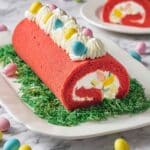 Keywords: Easter cake roll, strawberry cake roll, jelly roll dessert, whipped cream filling, spring dessert, holiday cake