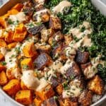 - Assemble Bowls: Start by placing a base of rice in each bowl. Next, layer the cooked chicken, roasted sweet potatoes, and seasonal vegetables. Drizzle the prepared sauce over the top in generous amounts for added creaminess and flavor.