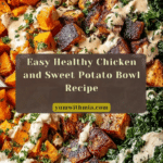 This easy and healthy chicken and sweet potato bowl combines tender, spiced chicken with naturally sweet roasted sweet potatoes and fresh seasonal vegetables. Topped with a creamy, tangy yogurt sauce, it’s a balanced and satisfying meal perfect for lunch or dinner.