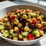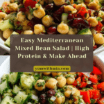 This Easy Mediterranean Mixed Bean Salad is a high-protein, refreshing, make-ahead dish perfect for a light lunch or a side at dinner. Packed with chickpeas, black beans, and cannellini beans, combined with crisp vegetables and coated in a flavorful Mediterranean-inspired dressing, this salad is nutritious, vibrant, and simple to prepare.