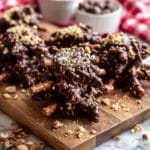 English Toffee Haystacks are a delightful no-bake treat combining crunchy chow mein noodles, salted almonds, and rich Heath Bits O’ Brickle English Toffee Bits all coated in creamy melted chocolate. These sweet and crunchy clusters are quick to prepare and perfect for serving at parties or as a simple indulgent snack.