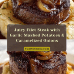 This filet steak recipe serves up tender, juicy beef paired with sweet caramelized onions and creamy garlic mashed potatoes. It’s a classic combination that feels indulgent yet approachable for a cozy dinner at home.