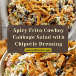 Keywords: Frito Cowboy Cabbage, Tex-Mex salad, coleslaw, black bean salad, chipotle dressing, Fritos salad, no-cook salad