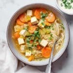 This vibrant Garlic Ginger Soup with Noodles is a comforting and aromatic vegan dish perfect for soothing chilly days or anytime you crave a flavorful broth. Packed with fresh ginger, garlic, vegetables, tofu, and rice noodles, it’s both nourishing and easy to prepare in under 40 minutes.