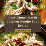 This Ginger Garlic Chicken Noodle Soup is a comforting and flavorful homemade recipe featuring tender chicken, fresh ginger and garlic, hearty vegetables, and egg noodles simmered together in a savory broth. Perfect for a cozy meal, this soup combines the zing of ginger with aromatic garlic for an ultimate soothing dish.