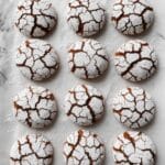 Crinkles form best when the dough is well chilled before baking and rolled generously in powdered sugar. Make sure to refrigerate the dough for at least 2 hours to allow the butter to firm up, which helps create the cracking effect during baking.