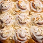 - Prepare Frosting and Finish: While the rolls cool briefly, whisk together powdered sugar, melted butter, heavy cream, whole milk, and almond extract until smooth. Pour the frosting generously over the warm rolls, sprinkle with sliced almonds, and serve.