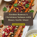 Gordon Ramsay’s Christmas Salmon is a festive and flavorful dish featuring a beautifully glazed salmon side baked and broiled to perfection. Accompanied by a creamy dill sauce and a vibrant cranberry-almond tapenade, this elegant recipe combines sweet, tangy, and herbaceous flavors, making it a perfect centerpiece for holiday celebrations.