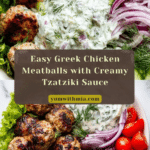 Keywords: Greek chicken meatballs, tzatziki sauce, baked meatballs, Mediterranean chicken recipe, healthy chicken meatballs