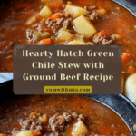 A hearty and flavorful Hatch Green Chile Stew featuring ground beef, tender potatoes, roasted Hatch green chiles, and savory seasonings. This comforting stew is perfect for cooler days and pairs wonderfully with warm tortillas or crusty bread.